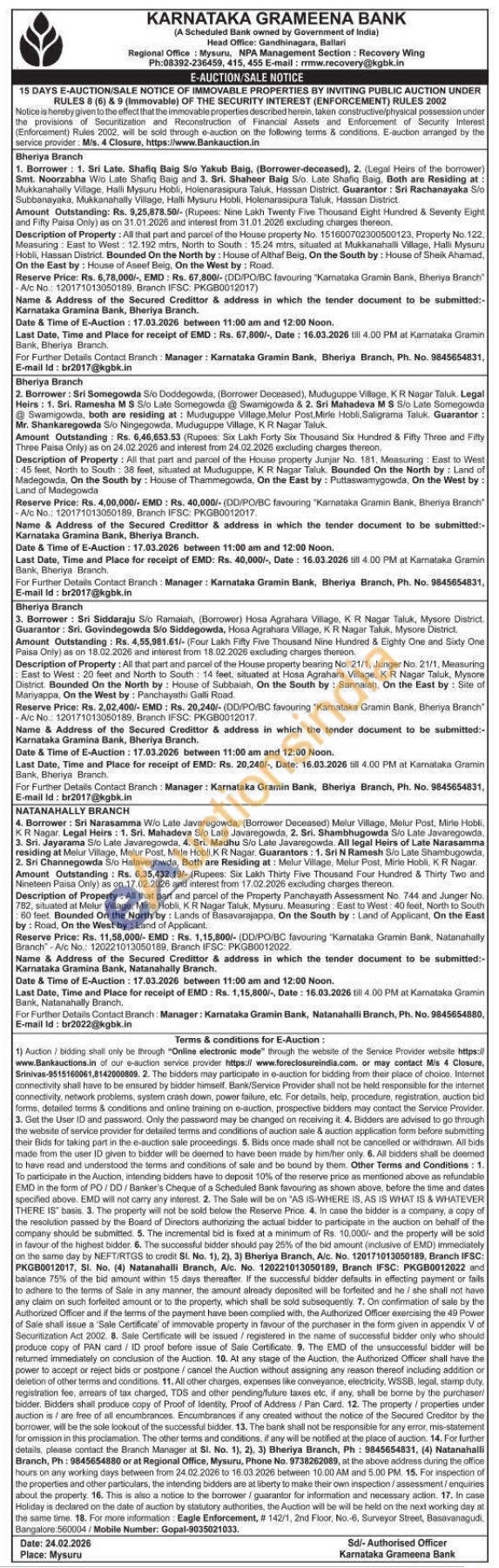 Description of Property: All that part and parcel of the House property No. 151600702300500123, Property No. 122, Measuring: East to West: 12.192 mirs, North to South 15.24 mtrs, situated at Mukkanahalli Village, Halli Mysuru Hobli, Hassan District. Bounded On the North by: House of Althaf Beig. On the South by: House of Sheik Ahamad, On the East by: House of Aseef Beig, On the West by: Road