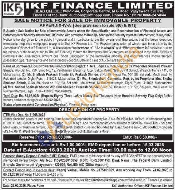 All that piece and parcel of land bearing Pune Municipal Corporation Property No. S.No. 69. Hissa No. 10/1/28, in admeasuring area 0.0300 H. Aar. Out of the same 0.0150 H. Aar i.e. 1500 sq. ft. and thereon construction situated at Dighi Tal-Haveli Dist-Sai park, Mauli wasti, Nr Rukhmini temple, Dighi, Taluka Havell, District Pune and bounded by: East: Sub Hissa No. 20: South: By property of S.No. 69/11: West: Sub Hissa No. 20, North: By property of Mr. Balkrishna More.