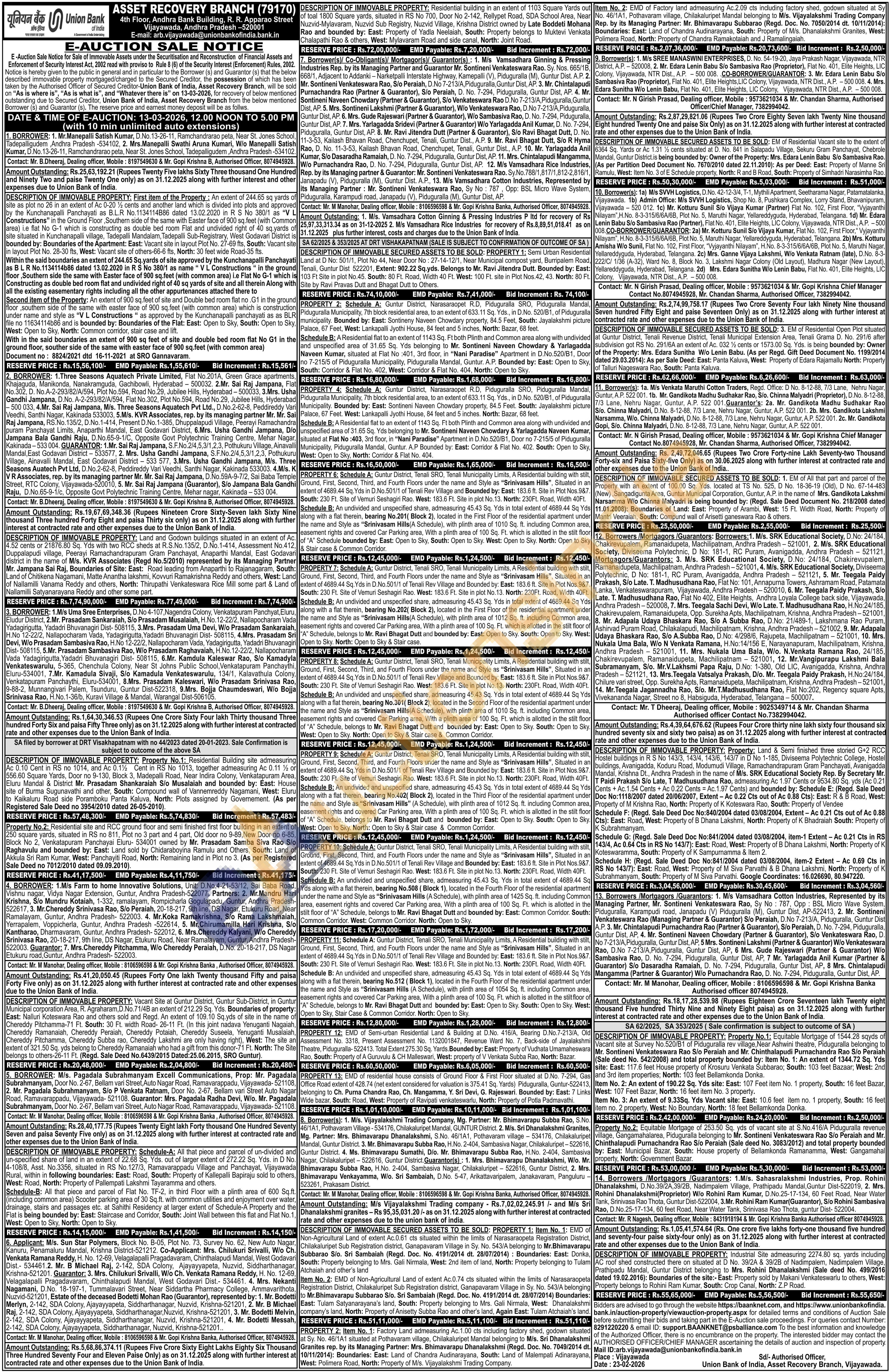 Contact: Mr. M Manohar, Dealing officer, Mobile: 8106596598 & Mr. Gopi Krishna Banka, Authorised Officer, 8074945928.