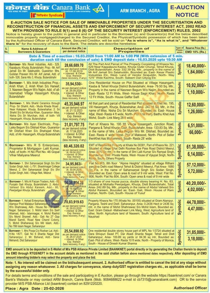 Contact (Mob. 9084688622 e-mail id cb7315@canarabank.com)