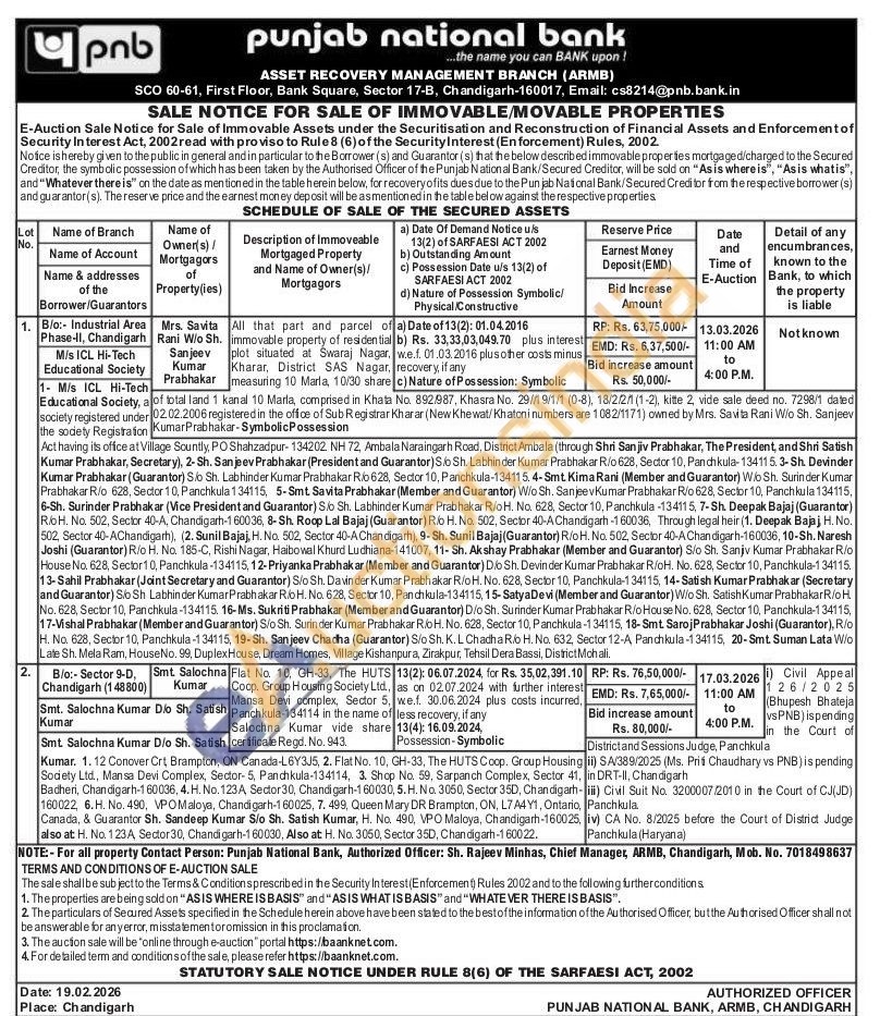 Flat No. 10, GH-33, The HUTS Coop, Group Housing Society Ltd., Mansa Devi complex, Sector 5, Panchkula-134114 in the name of Salochna Kumar vide share certificate Regd. No. 943.