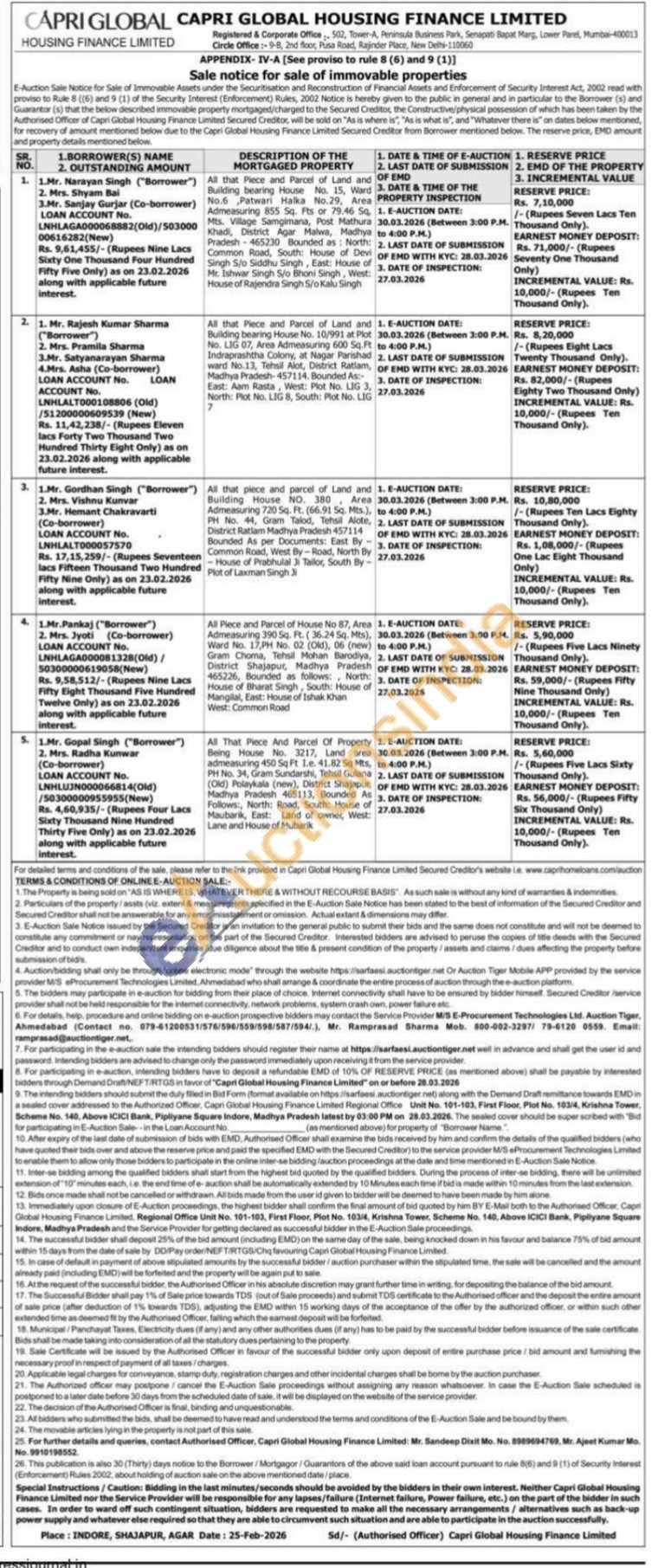 All Plece and Parcel of House No 87, Area Admeasuring 390 Sq. Pt. (36.24 54. Hits), Ward No. 17,PH No. 02 (00), 06 (new) Gram Choma, Tehsil Mohan Barodiya, District Shajapur Madhya Pradesh 465226, Bounded as follows: North: House of Bharat Singh, South: House of Mangilal, East: House of Ishak Khan West: Common Road