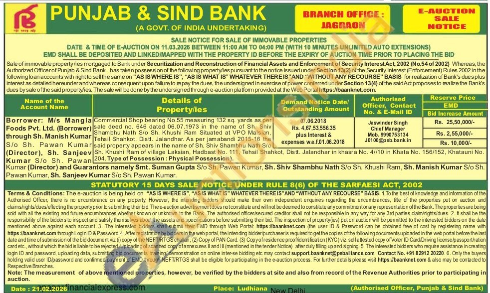 Commercial Shop bearing No.55 measuring 132 sq. yards as per sale deed no. 646 dated 06.07.1973 in the name of Sh. Shiv Shambhu Nath S/o Sh. Khushi Ram Situated at VPO Malsian,Tehsil Shahkot, Distt. Jalandhar. As per jamabandi 2015-16 the said property appears in the name of Sh. Shiv Shambhu Nath S/o Sh. Khushi Ram of village Laksian, Hadbast No. 111, Tehsil Shahkot, Distt. Jalandhar in khasra No. 4//10 in Khata No. 156/152, Khatauni No.204