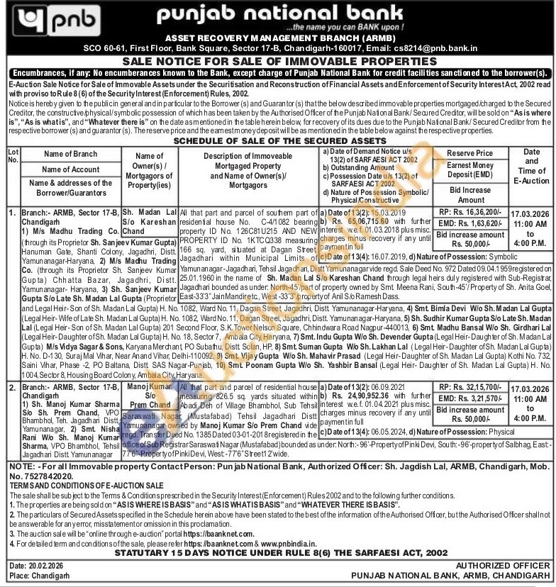 Authorized Officer: Sh. Jagdish Lal ARMB Chandigarh Mobile No : 7527842020