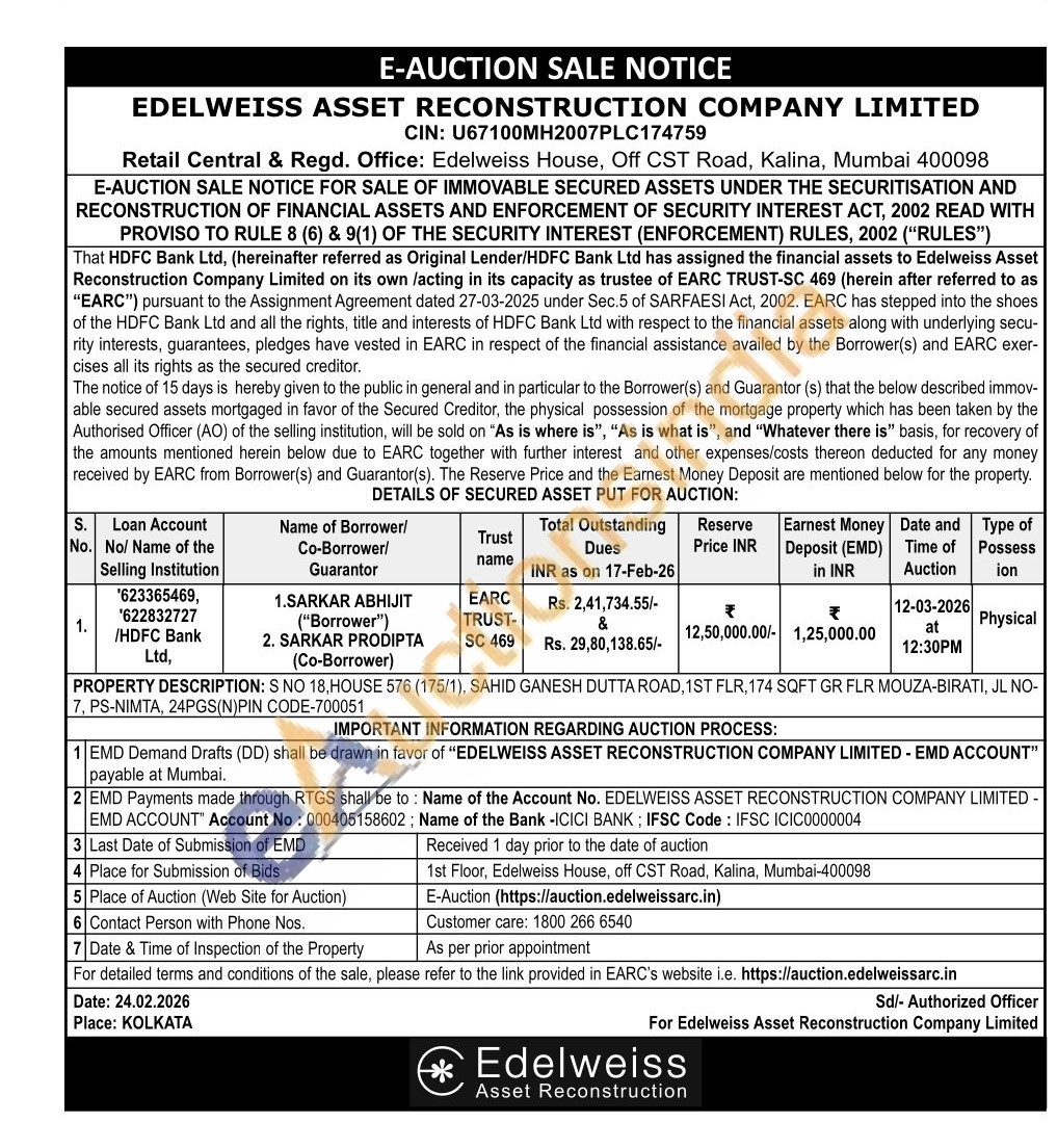 PROPERTY DESCRIPTION: S NO 18,HOUSE 576 (175/1), SAHID GANESH DUTTA ROAD, 1ST FLR, 174 SQFT GR FLR MOUZA-BIRATI, JL NO-7, PS-NIMTA, 24PGS(N)PIN CODE-700051
