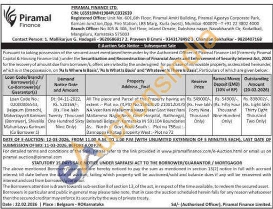 All The piece and Parcel of the Property having an extent: Plot no: 74, PID No. 15040020 2100120470 NA Veer Rani Mallamuna Nagar, Near Govt Veer Rani Mallamma Nagar, Near Govt Hospital, Bailhongal, Belavadi Belgaum Karnataka IN 591104 Boundaries As North Govt Road South Plot no 75East Dannappa Kotagi property West: Plot no 72