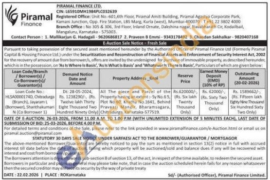 All The piece and Parcel of the Property having an extent: Sy No.65 Plot No.60, Khatha No. 1641, Behind Pravaasi Mandir, Bharamsagara Chitradurga, Karnataka-577519