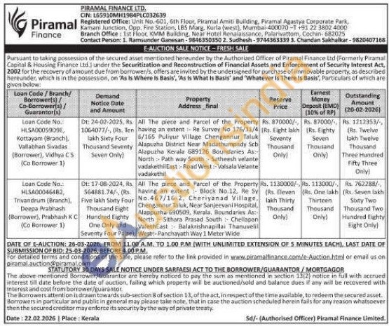 All The piece and Parcel of the Property having an extent Block No.12, Re Sv No. 467/16-2, Cheriyanad Village, Chengannur Taluk, Near Sanjeevani Hospital, Alappuzha-690509, Kerala, Boundaries As North Sithara Prasad South Chellapan ValethEast Balakrishnapilai Thanuvelii West:-Panchayath Way 1 Meter Wide