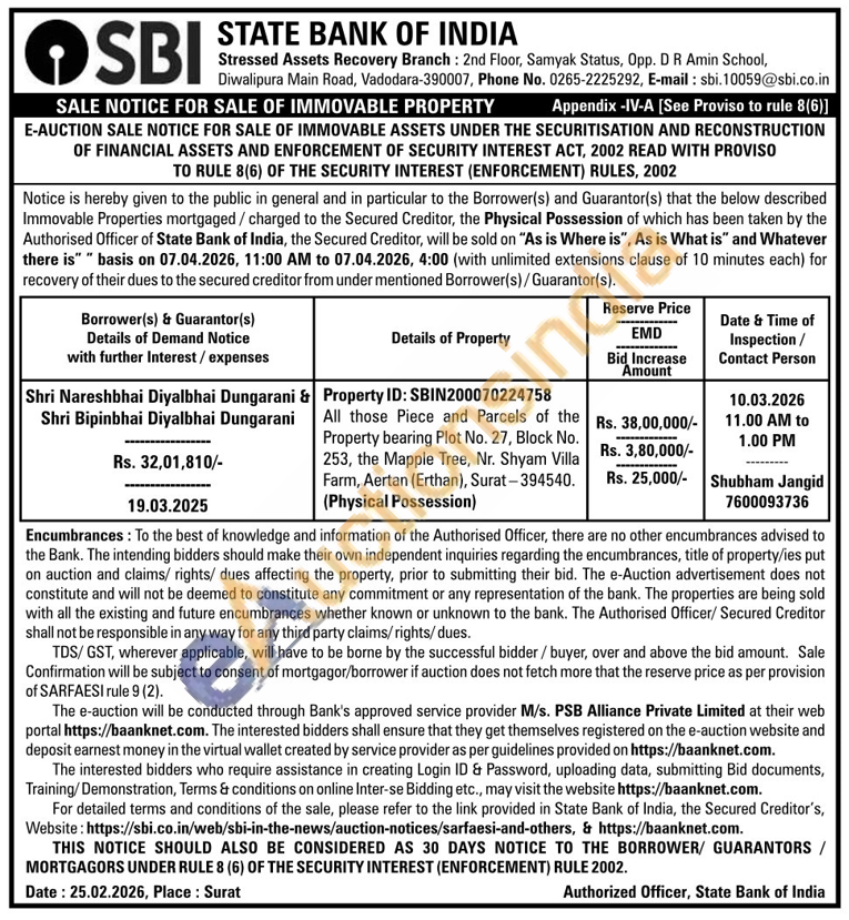 All those Piece and Parcels of the Property bearing Plot No. 27, Block No. 253, the Mapple Tree, Nr. Shyam Villa Farm, Aertan (Erthan), Surat-394540