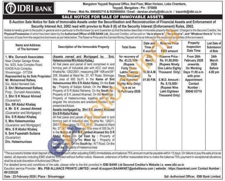 All that piece and parcel of land comprised in and forming part of Industrial plot, Khatha No. 1262/1-2651/1, Measuring 15 FL.X.20 Ft, Situated at Ward No. 27. NT Road, Shimoga. Site area of 300 Sq.Ft. in the Name of Shri SK Javeed Ahamed Sio SR Abdul Kalaq. On the East by Property of Haleemunnisa. On the West by: Property of Sabjan Saheb, On the South by: NT Road, On the North by: Property of Haleemunnisa