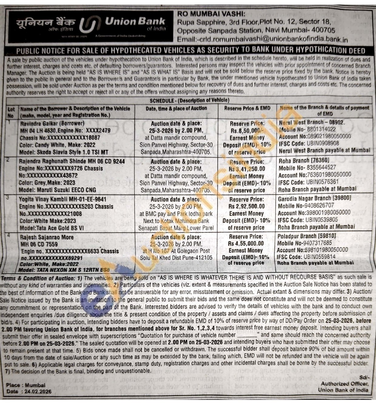 MH 04 LH 4630, Engine No: XXXX2479 Chassis No:XXXXXXXXXXXX18087 Color: Candy White, Make: 2022 Model: Skoda Slavia Style 1.0 TSI MT