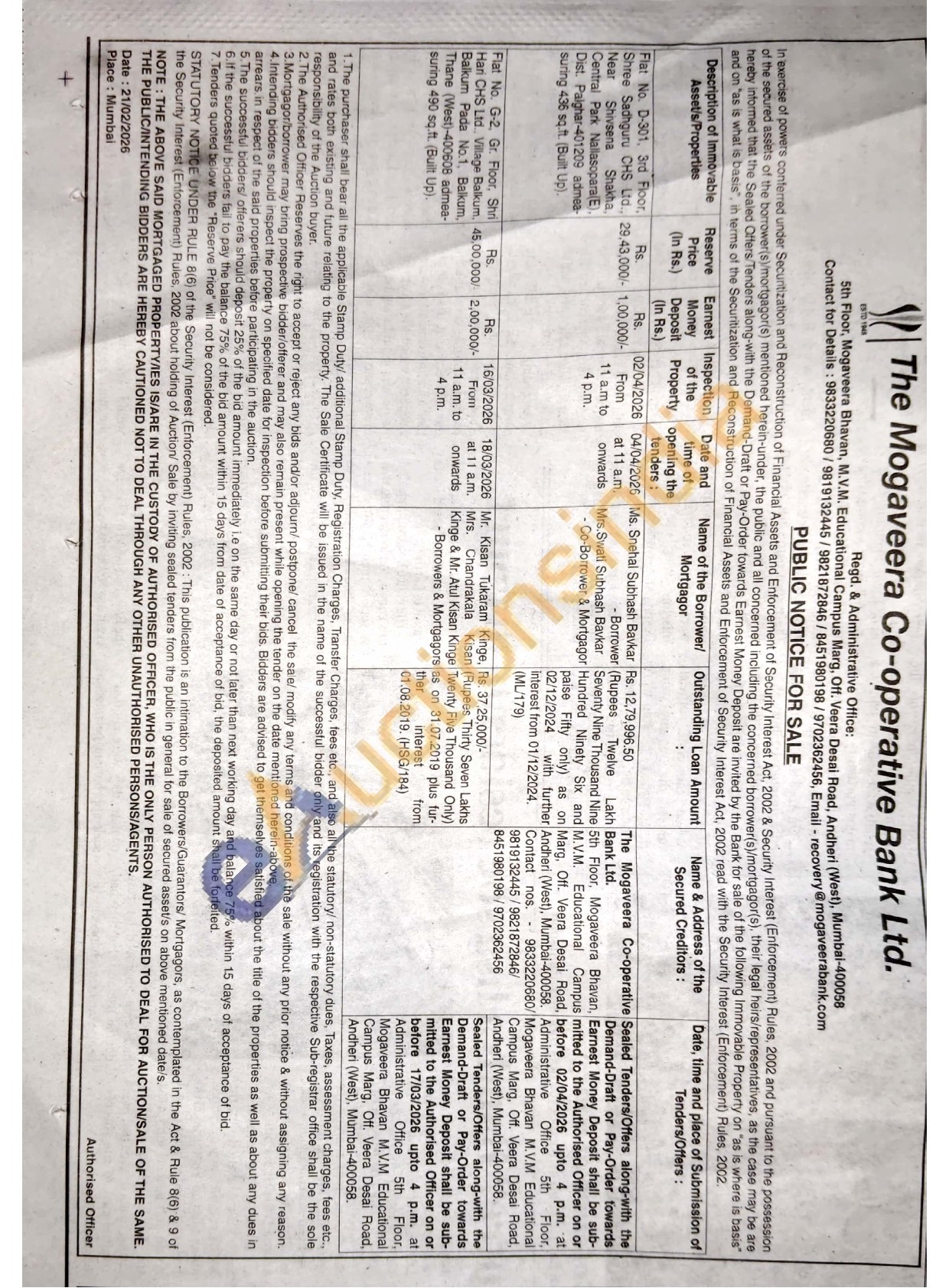 Contact nos. 9833220680/9819132445/9821872846/8451980198/9702362456