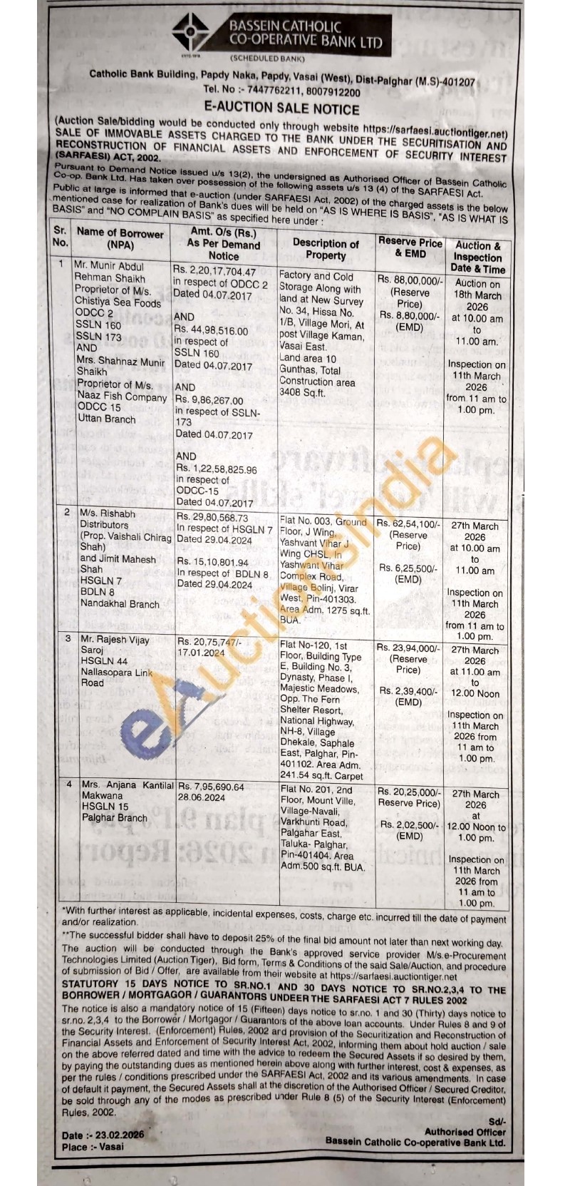 Flat No-120, 1st Floor, Building Type E, Building No. 3, Dynasty, Phase I, Majestic Meadows, Opp. The Fern Shelter Resort, National Highway, NH-8, Village Dhekale, Saphale East, Palghar, Pin-401102. Area Adm. 241.54 sq.ft. Carpet