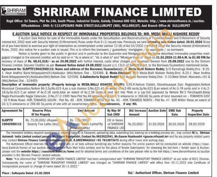 S.PS.R.Nellore District, Stonehousepet Sub- Registration, Nellore Municipal Corporation, Nellore Bit-2.Sy.No.621-A,as a sub division S.No.621-A1 an extent of Ac2-68 cents, Sy.No.621-B,an extent of Ac-3-78 cents and in it Ac.2-18.Sy.No.621-C,an extent of Ac.0.18 cents total an extent of Ac.2.36 cents.of land laid into Plots in a Lay-Out approved by Nellore Bit-2 Panchayath, Balaji Nagar, Padmavathi Nagar Extension, D.No.27-2-1995 Near. Plot No.48 admeasuring 33-1/3 ankanams or 266.66 Sq yards of land bounded on:- TOWARDS EAST 30 ft Wide Road- 40ft, TOWARDS SOUTH Plot No. 49-60ft, TOWARDS WEST:Plot No. 45-40ft, TOWARDS NORTH: Plot No. 47-60ft Within these an extent of 33-1/3 ankanams or 266.66 Sq yards of site with all easementary rights.. Encumbrances, if any. NIL
