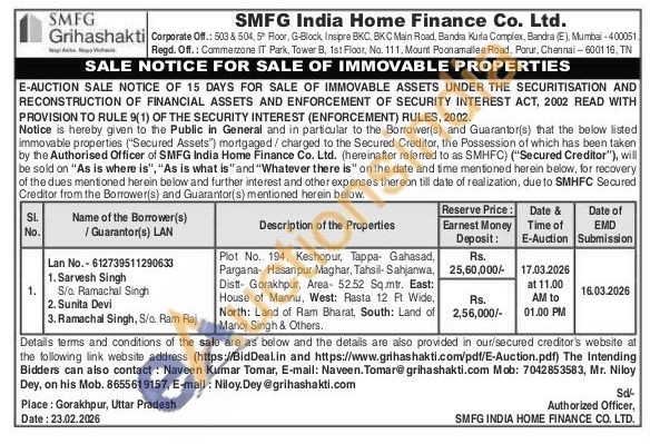 Plot No. 194, Keshopur, Tappa Gahasad, Pargana Hasanpur Maghar, Tahsil- Sahjanwa, Distt- Gorakhpur, Area 52.52 Sq.mtr. East: House of Mannu, West: Rasta 12 Ft Wide, North: Land of Ram Bharat, South: Land of Manoj Singh & Others.