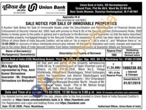 All that part and parcel of the property admeasuring 4305.56 sq. ft consisting part of Open Diverted Land at khasra no.129. P.H.No.25/8, Ward No.3. Village Khillikheda, Vikaskhand Obedullaganj, Tehsil Goharganj within the registration sub district Obedullaganj and district Raisen Owner of the property:- Shri Omprakash Shrivastava s/o Bhaiyalal Bounded: North: House of Mr. Hari Narayan Yadav, South Plot of Mr. Mohan Singh Yadav, East: Nalla, West: Govt. Road