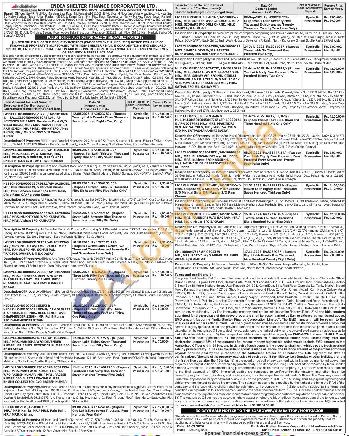 Description Of Property: All Piece and Parcel of Plot/Land measuring 11 marle 4 sarsai (345 sq. yards) i.e. 1/7 share out of the total land 4 kanal 0 marle situated within khewat no.1056, khata no. 1216, Rectangle and Killa no.95//5/2 (4-0) as per jamabandi for the year 2020-21 within revenue estate of village Sisana, Tehsil Kharkhoda and District Sonepat BOUNDARY:- East-NA, West-NA, North-NA, South-NA