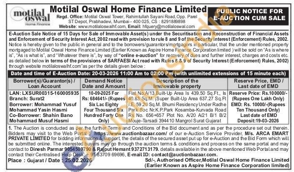Flat No.A/13, Built-Up Area Is 439.50 Sq.Ft., Is 40.83 Sq.M. (Super Built-Up Area 637.27 Sq.Ft I.E. 59.20 Sq.M. Bhumi Residency Under Radhe Park Soc Nr.K.P.Park Kosamba-Kurvada Road Rs No. 656+657 Plot No. A/20 A/21 B/1 B/2 Mouje-Tarsadi 3944 10 Mangrol Surat Gujarat