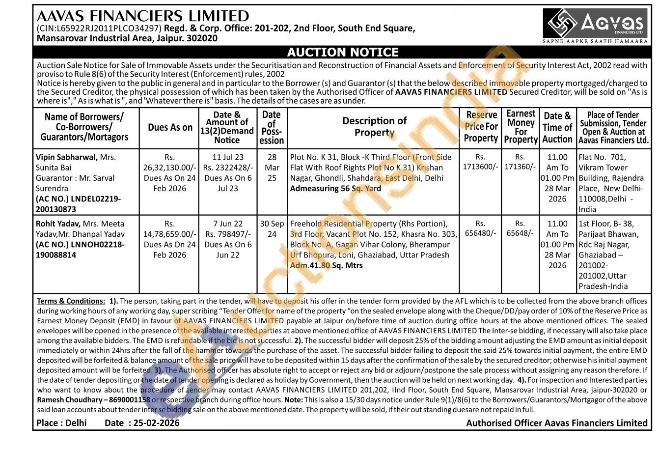 Plot No. K 31, Block -K Third Floor (Front Side Flat With Roof Rights Plot No K 31) Krishan Nagar, Ghondli, Shahdara, East Delhi, Delhi Admeasuring 56 Sq. Yard