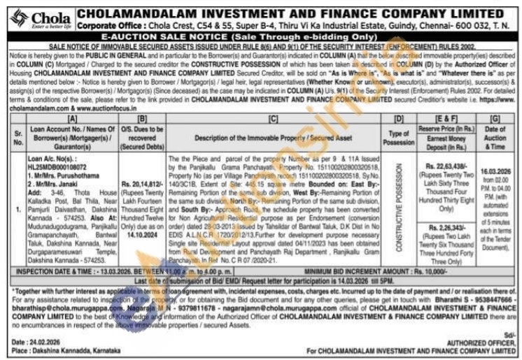 The the Piece and parcel of the property Number as per 9 & 11A Issued by the Panjikallu Grama Panchayath, Property No. 151100202800320518, Property No (as per Village Panchayath record) 151100202800320518. Sy No 1400C18. Extent of Site: 445.15 square metre Bounded on: East By:-Remaining Portion of the same sub division, West By:-Remaining Portion of the same sub division, North By:- Remaining Portion of the same sub division, and South By:- Approach Road, the schedule property has been converted for Non Agricultural Residential purpose as per Endorsement (conversion order) dated 28-03-2013 Issued by Tahsildar of Bantwal Taluk, DK Dist in No EDIS ALN.CR 1720/2012/13. Further for development purpose necessary Single site Residential Layout approval dated 04/11/2023 has been obtained from Rural Development and Panchayath Raj Department, Ranjikallu Gram Panchayath in Ref No. CR 07/2020-21.