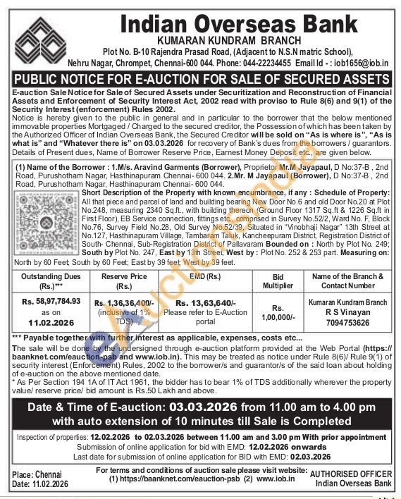 All that piece and parcel of land and building bearing New Door No.6 and old Door No.20 at Plot No.248, measuring 2340 Sq.ft., with building thereon (Ground Floor 1317 Sq.ft & 1226 Sq.ft in First Floor), EB Service connection, fittings etc., comprised in Survey No.52/2, Ward No. F, Block No.76, Survey Field No.28, Old Survey No.52/39, Situated in "Vinobhaji Nagar" 13th Street at No.127, Hasthinapuram Village, Tambaram Taluk, Kancheepuram District, Registration District of South Chennai, Sub-Registration District of Pallavaram Bounded on: North by Plot No. 249; South by Plot No. 247, East by 13th Street, West by: Plot No. 252 & 253 part. Measuring on: North by 60 Feet South by 60 Feet; East by 39 feet West by 39 feet