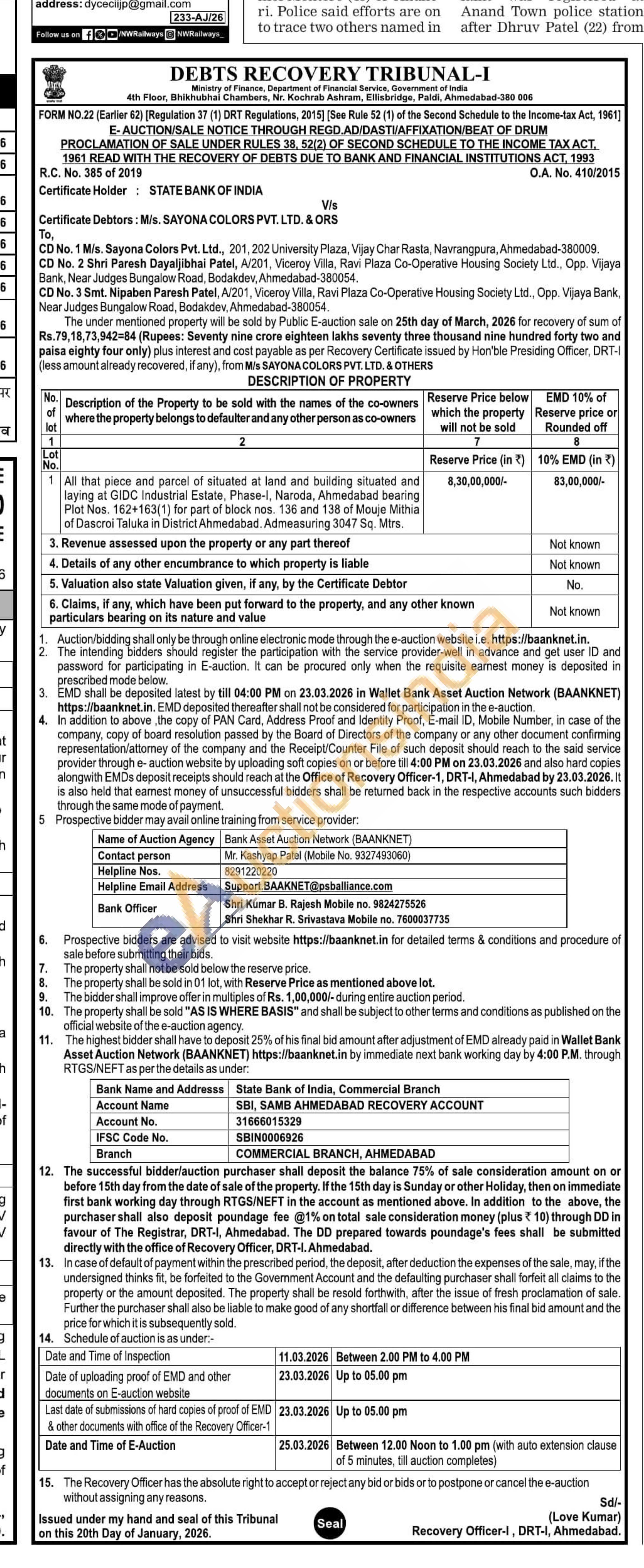 All that piece and parcel of situated at land and bulliding situated and laying at GIDC industrial Estate, Phase-1, Naroda, Ahmedabad bearing Plot Nos. 162-163(1) for part of block nos. 136 and 138 of Mouje Mithia of Dascroi Taluka in District Anmedabad. Admeasuring 3047 Sq. Mrs