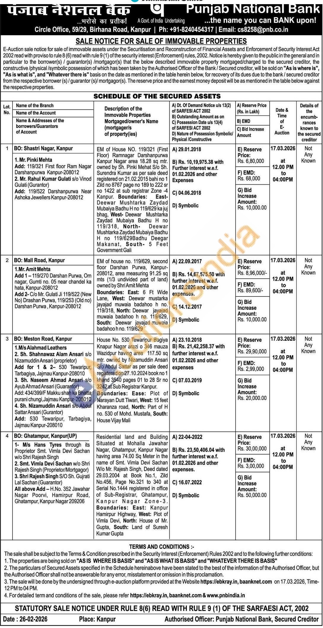 EM of House NO. 119/321 (First Floor) Ramnagar Darshanpurwa Kanpur Nagar area 18.28 sq mtr. owned by Sh. Pinki Mehat S/o Sh. Surendra Kumar as per sale deed registered on 21.02.2015 bahi no 1 Zild no 8767 page no 189 to 222 sr no 1422 at sub registrar Zone -4 Kanpur. Boundaries: East-Deewar Mushtarka Zaydad Mubaiya Badhu H no 119/629 ka juj bhag, West- Deewar Mushtarka Zaydad Mubaiya Badhu H по 119/318, North- Deewar Mushtarka Zaydad Mubaiya Badhu Η no 119/629Badhu Deegar Makanat, South- 5 Feet Government Gali