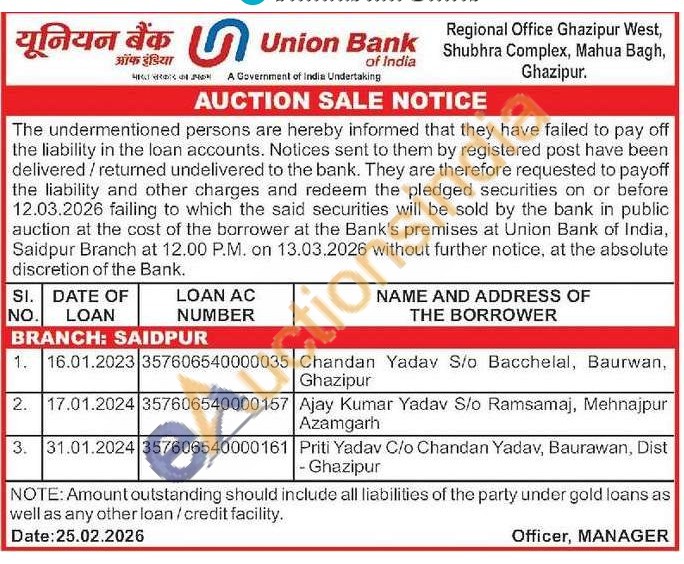 Union Bank of India Gold Auctions Auction in Ghazipur