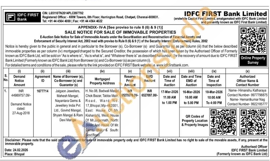 H. No.08, Badwali Masjid Chok Bazar, Tabba Main, Road, Ward No. 17, Bhopal, Mp-462001, East House Of Mr. Kishanlaljij, West: House Of Mr.Jagannath, North: Street And House Of Mr. Rama Bhal. & South: Govt Road.
