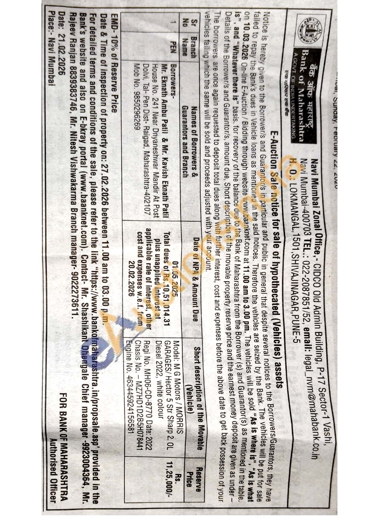 Mr. Shashikant Dhengale Chief manager -9923004364, Mr. Rajeev Ranjan 8839383746, Mr. Nitesh Vishwakarma Branch manager-9022273611.