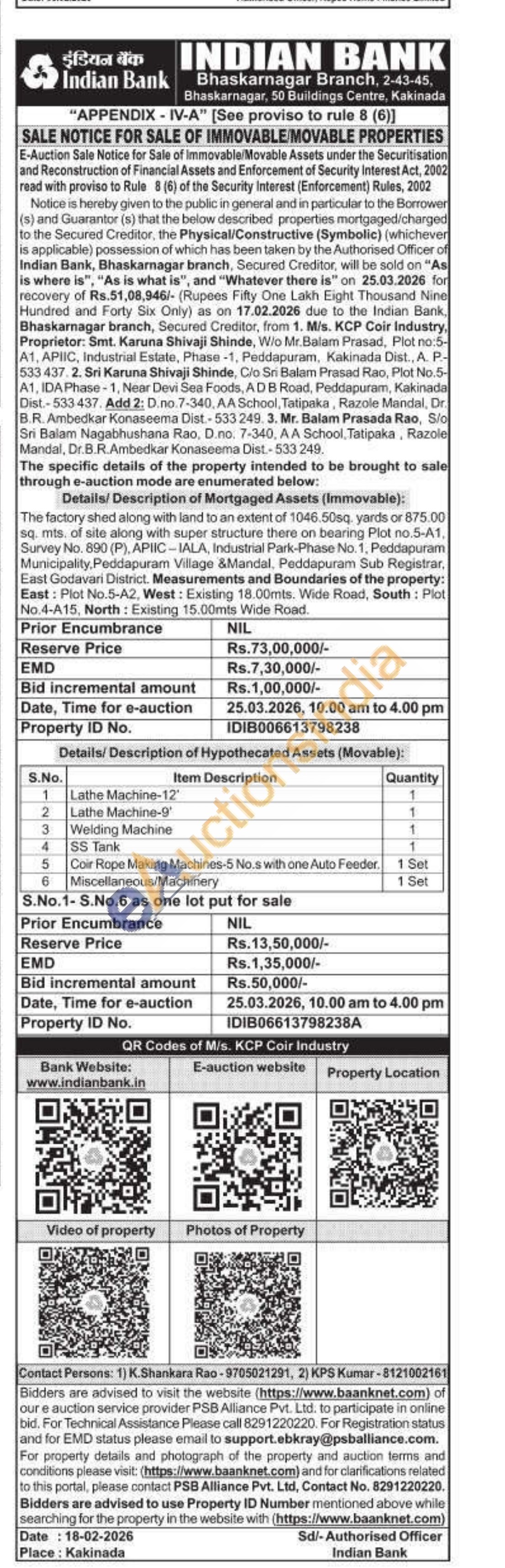 Lathe Machine-12' 1 2 Lathe Machine-9' 1 3 Welding Machine 1 4 SS Tank 1 5 Coir Rope Making Machines-5 No.s with one Auto Feeder 1 Set 6 Miscellaneous/Machinery 1 Set