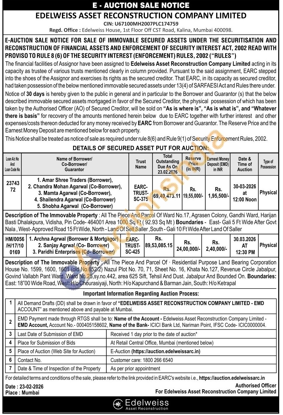 Description of The Immovable Property: All The Piece And Parcel Of Residential Purpose Land Bearing Corporation House No. 1599, 1600, 1601 (old No.652/2) Nazul Plot No. 70, 71, Sheet No. 16, Khata No.127, Revenue Circle Jabalpur, Govind Vallabh Pant Ward, Ward No.25,sy.no.442, area 625 Sift, Tehsil And Dust. Jabalpur And Bounded On. Boundaries: East: 18°00 Wide Road, West: H/o Chourasiyaji, North: H/o Kapurchand & Barman Jain, South: H/o Ketrapal
