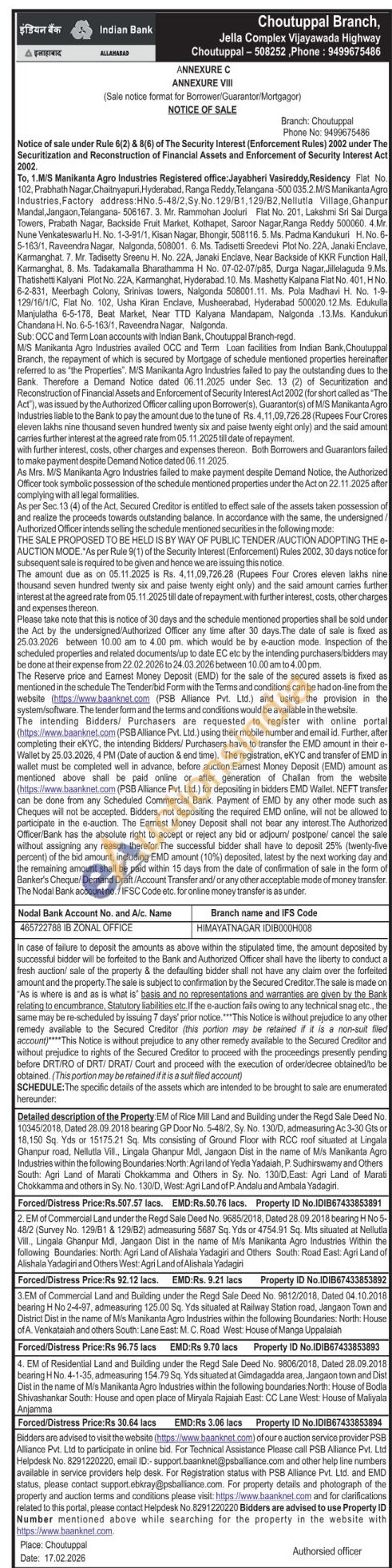 3.EM of Commercial Land and Building under the Regd Sale Deed No. 9812/2018, Dated 04.10.2018 bearing H No 2-4-97, admeasuring 125.00 Sq. Yds situated at Railway Station road, Jangaon Town and District Dist in the name of M/s Manikanta Agro Industries within the following Boundaries: North: House of A. Venkataiah and others South: Lane East: M. C. Road West: House of Manga Uppalaiah