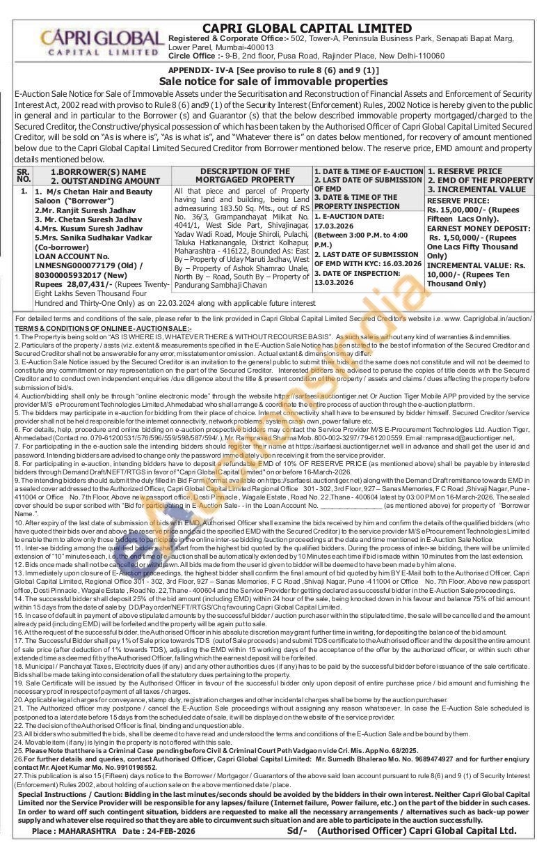 All that piece and parcel of Property having land and building, being Land admeasuring 183.50 Sq. Mts., out of RS No. 36/3, Grampanchayat Milkat No. 4041/1, West Side Part, Shivajinagar, Yadav Wadi Road, Mouje Shiroli, Pulachi, Taluka Hatkanangale, District Kolhapur, Maharashtra - 416122, Bounded As: East By-Property of Uday Maruti Jadhav, West By Property of Ashok Shamrao Unale, North By Road, South By-Property of Pandurang Sambhaji Chavan