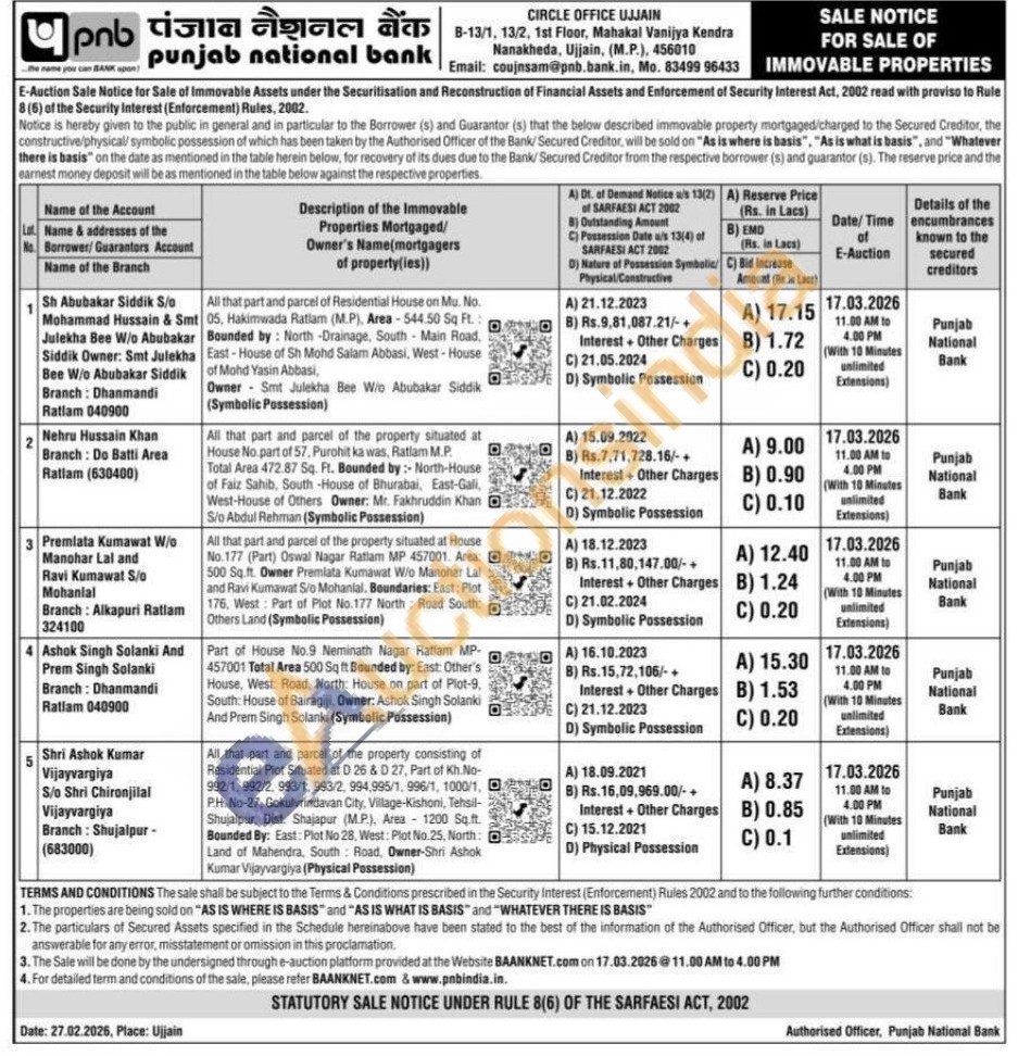 Part of House No.9 Neminath Nagar Ratlam MP-457001 Total Area 500 Sq ft Bounded by: East: Other's House, West Road, North House on part of Plot-9, South: House of Bairagiji, Owner: Ashok Singh Solanki And Prem Singh Solanki (Symbolic Possession)