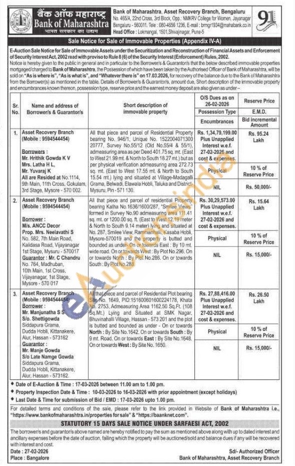 1) All that piece and parcel of Residential Property bearing No. 946/1, Unique No. 1522004071300 20777, Survey No.55/12 (Old No.55/4 & 55/1), admeasuring area as per Deed 401.75 sq. mt. (East to West 21.99 mt. & North to South 18.27 mt) but as per physical verification admeasuring area 272.73 sq. mt. (East to West 17.55 ml. & North to South 15.54 mt) lying and situated at Village-Madagalli Grama, Belwadi, Elawala Hobli, Taluka and District-Mysuru, Pin-571 130