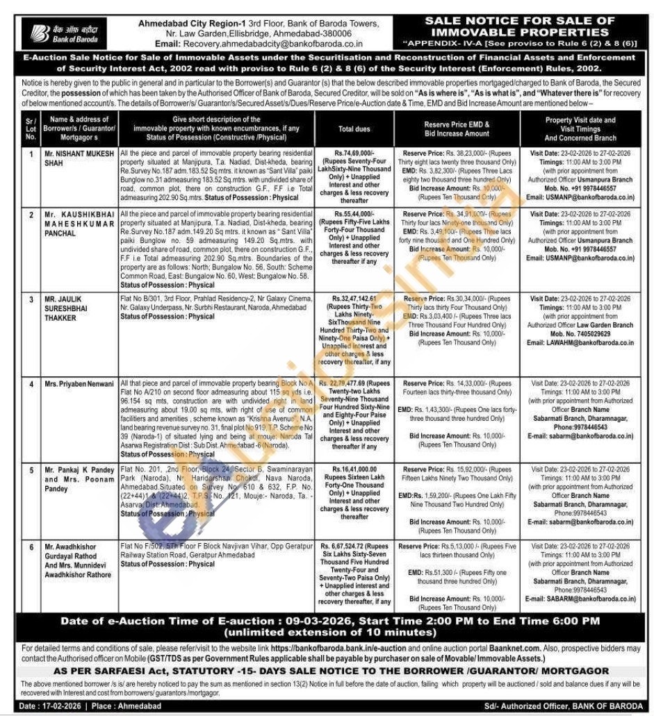 Contact no : 9978446543 E-mail: SABARM@bankofbaroda.co.in