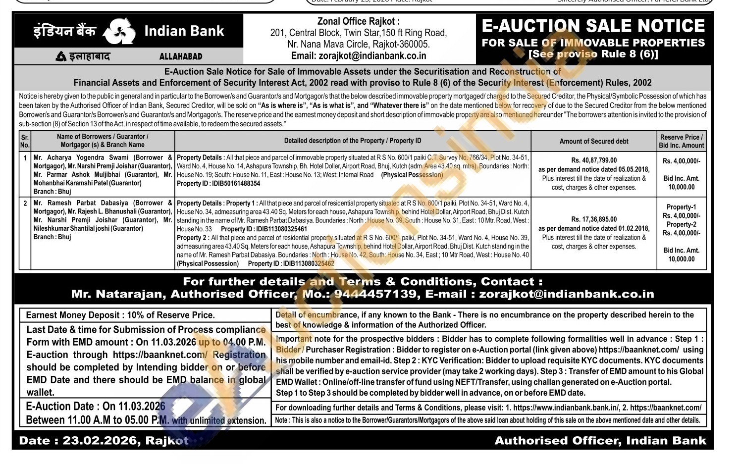Mr. Natarajan : 9444457139, E-mail: zorajkot@indianbank.co.in