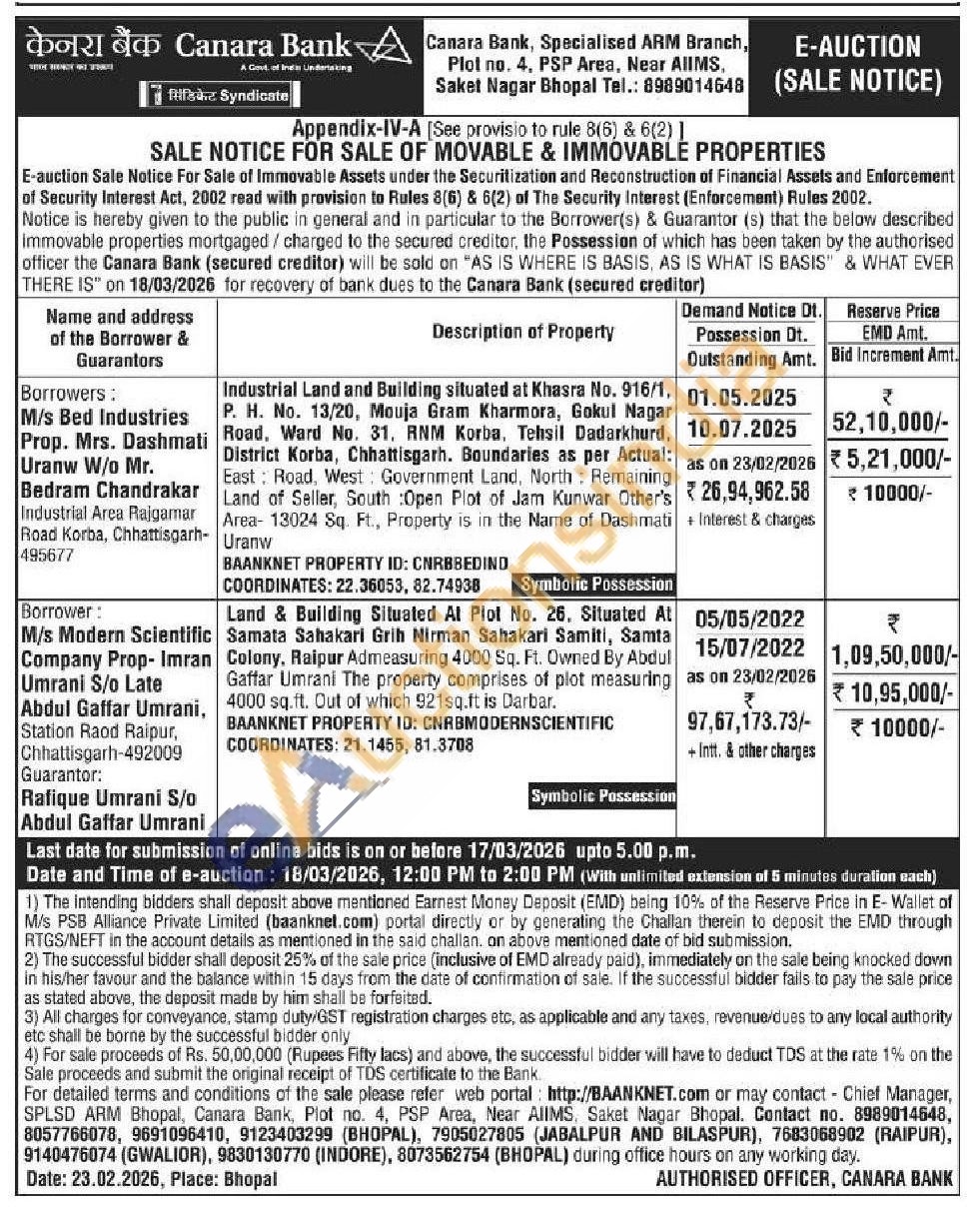 Industrial Land and Building situated at Khasra No. 916/1, P. H. No. 13/20, Mouja Gram Kharmora, Gokul Nagar Road, Ward No. 31. RNM Korba, Tehsil Dadarkhurd, District Korba, Chhattisgarh. Boundaries as per Actual: East Road, West Government Land, North: Remaining Land of Seller, South Open Plot of Jam Kunwar Other's Area- 13024 Sq. Ft., Property is in the Name of Dashmati Uranw