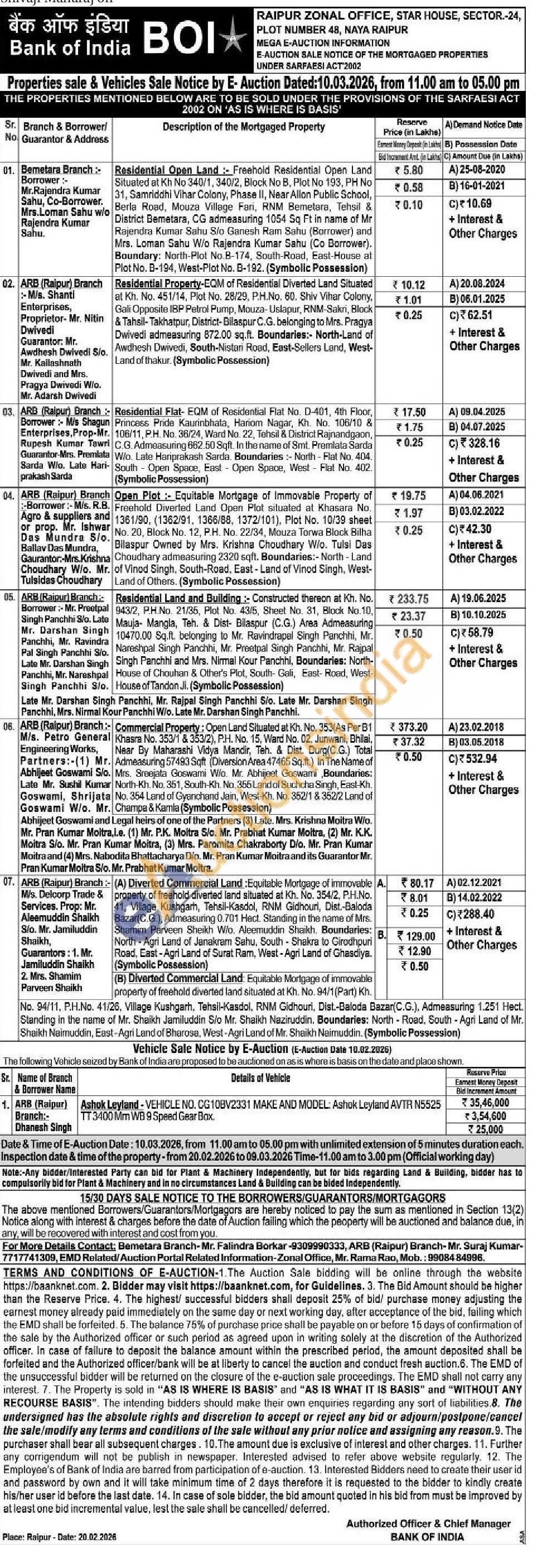 Commercial Property: Open Land Situated at Kh. No. 353(As Per B1 Khasra No. 353/1 & 353/2), P.H. No. 15, Ward No. 02, Junwani, Bhilai, Near By Maharashi Vidya Mandir, Teh. & Dist. Durg(C.G.) Total Admeasuring 57493 Sqft (Diversion Area 47465 Sq.ft.) In The Name of Mrs. Sreejata Goswami W/o. Mr. Abhijeet Goswami,Boundaries: North-Kh. No. 351, South-Kh. No. 355 Land of Suchcha Singh, East-Kh. No. 354 Land of Gyanchand Jain, West-Kh. No. 352/1 & 352/2 Land of Champa & Kamla (Symbolic Possession)