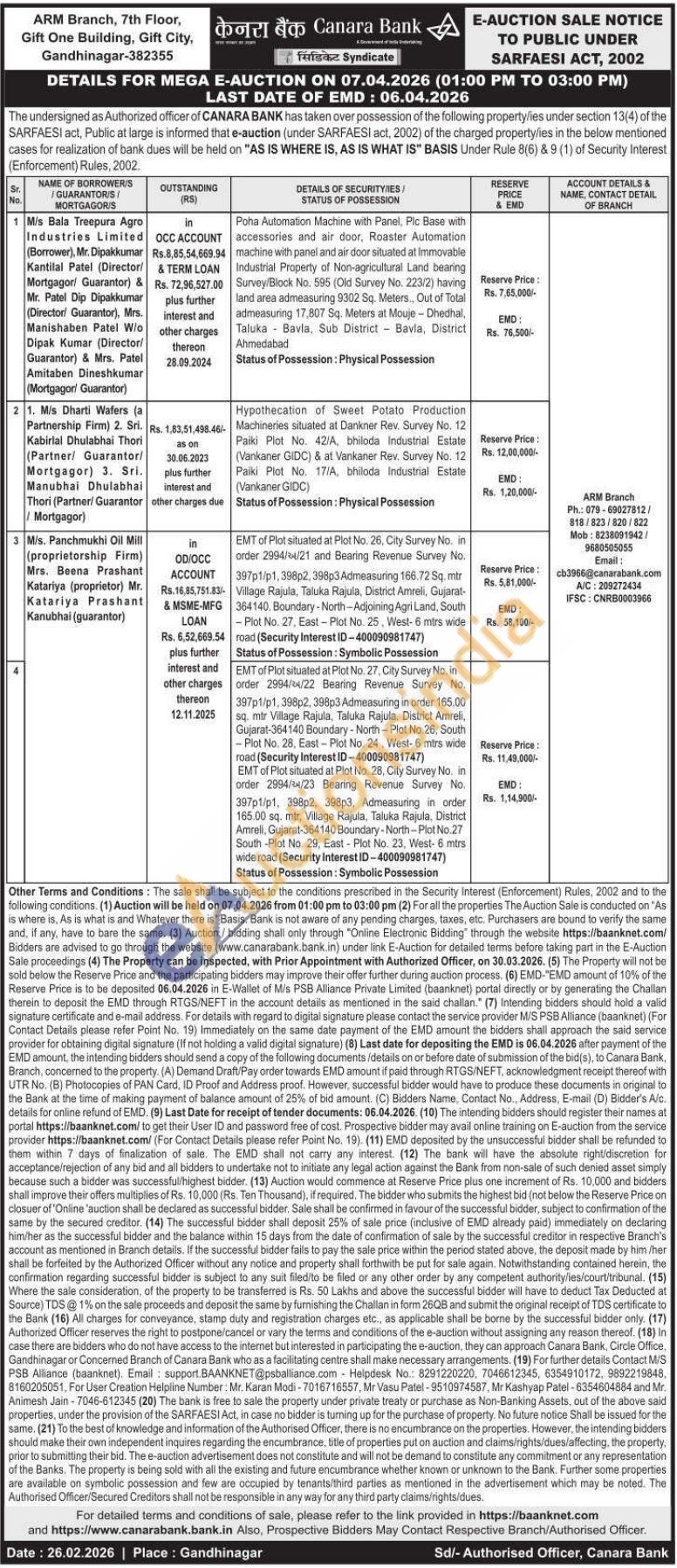 EMT of Plot situated at Plot No. 27, City Survey No. in order 2994/4/22 Bearing Revenue Survey No. 397p1/p1, 398p2, 398p3 Admeasuring in order 165.00 sq. mtr Village Rajula, Taluka Rajula, District Amreli, Gujarat-364140 Boundary-North-Plot No.26, South Plot No. 28, East-Plot No. 24, West-6 mtrs wide road (Security Interest ID-400090981747) EMT of Plot situated at Plot No. 28, City Survey No. in order 2994/4/23 Bearing Revenue Survey No. 397p1/p1, 398p2, 398p3, Admeasuring in order 165.00 sq. mtr, Village Rajula, Taluka Rajula, District Amreli, Gujarat-364140 Boundary-North-Plot No.27 South -Plot No. 29, East-Plot No. 23, West-6 mtrs wide road