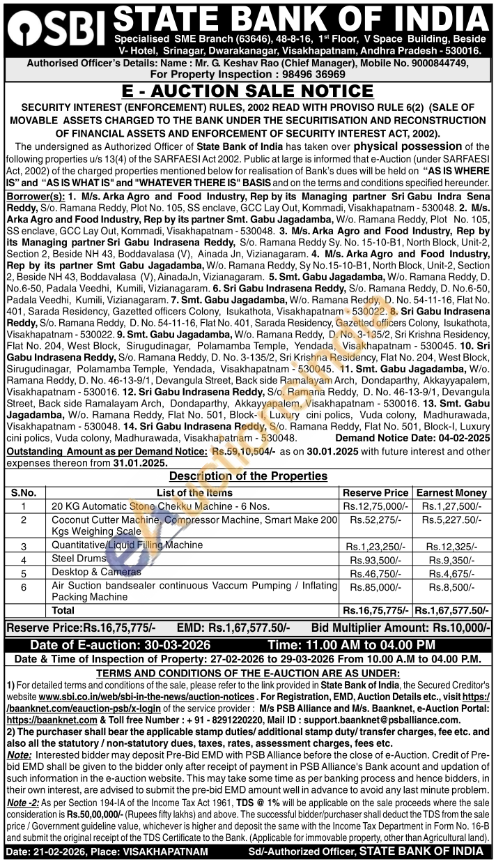 Authorised Officer's Details: Name: Mr. G. Keshav Rao (Chief Manager) Mobile No : 9000844749
