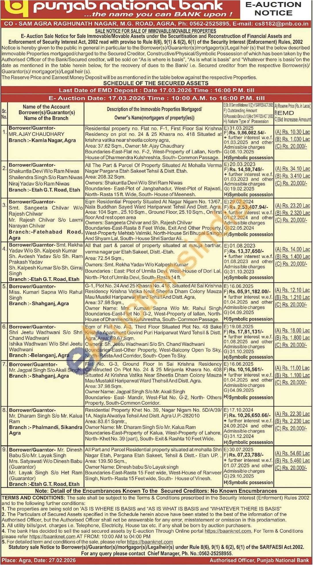 Residential property no. Flat no. F-1, First Floor Sai Krishna Residency on plot no. 24 & 25 Khasra no. 418 Situated at krishna vatika near sheetla colony agra, Area: 37.62 Sqm., Owner: Mr. Ajay Chaudhary Boundaries-East-Flat no. F-2, West-Property of Lallan, North-House of Dharmendra Kulshreshta, South-Common Passage