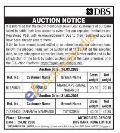 DBS Bank India Limited Gold Auctions Auction in Tuticorin