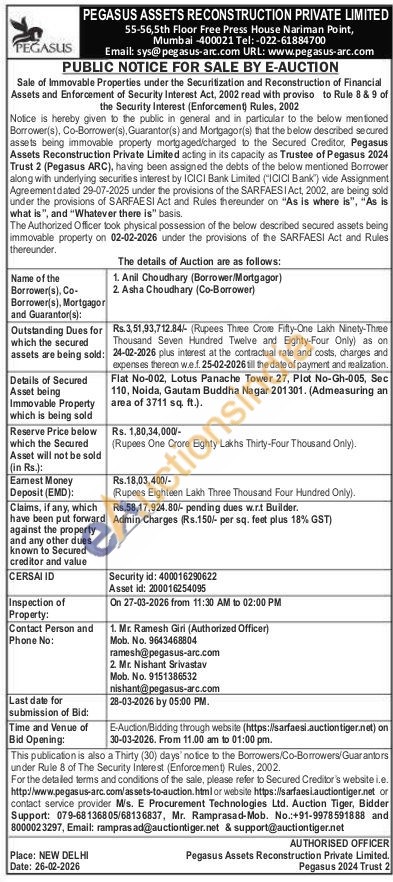Flat No-002, Lotus Panache Tower 27, Plot No-Gh-005, Sec 110, Noida, Gautam Buddha Nagar 201301. (Admeasuring an area of 3711 sq. ft.)