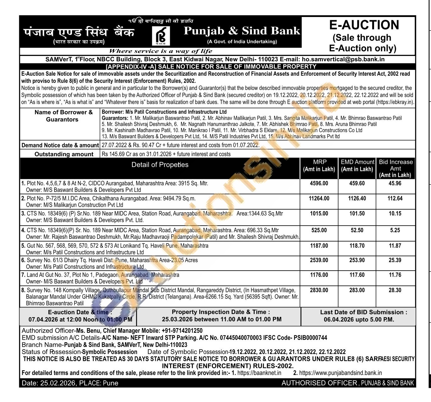 2. Plot No. P-72/5 M.I.DC Area, Chikalthana Aurangabad. Area: 9494.79 Sq.m. Owner: M/S Malikarjun Construction Pvt Ltd