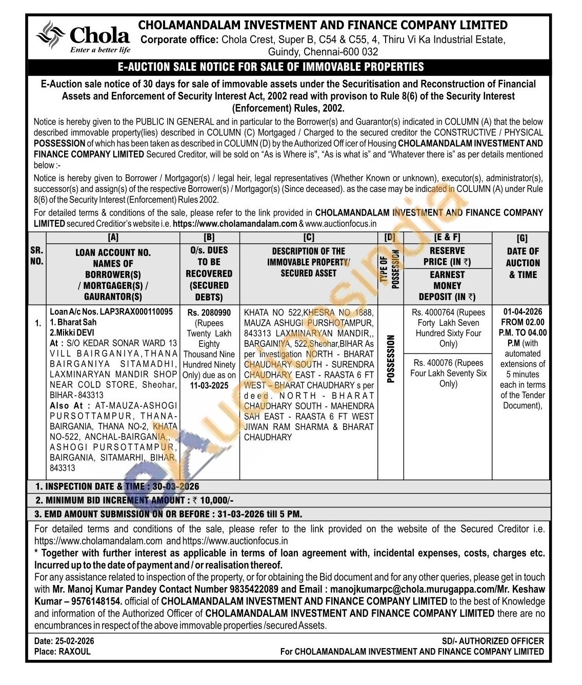 KHATA NO 522, KHESRA NO 1888, MAUZA ASHUGI PURSHOTAMPUR, 843313 LAXMINARYAN MANDIR.. BARGAINIYA, 522, Sheohar, BIHAR AS per Investigation NORTH BHARAT CHAUDHARY SOUTH - SURENDRA CHAUDHARY EAST RAASTA 6 FT WEST-BHARAT CHAUDHARY s per deed. NORTH BHARAT CHAUDHARY SOUTH MAHENDRA SAH EAST RAASTA 6 FT WEST JIWAN RAM SHARMA & BHARAT CHAUDHARY
