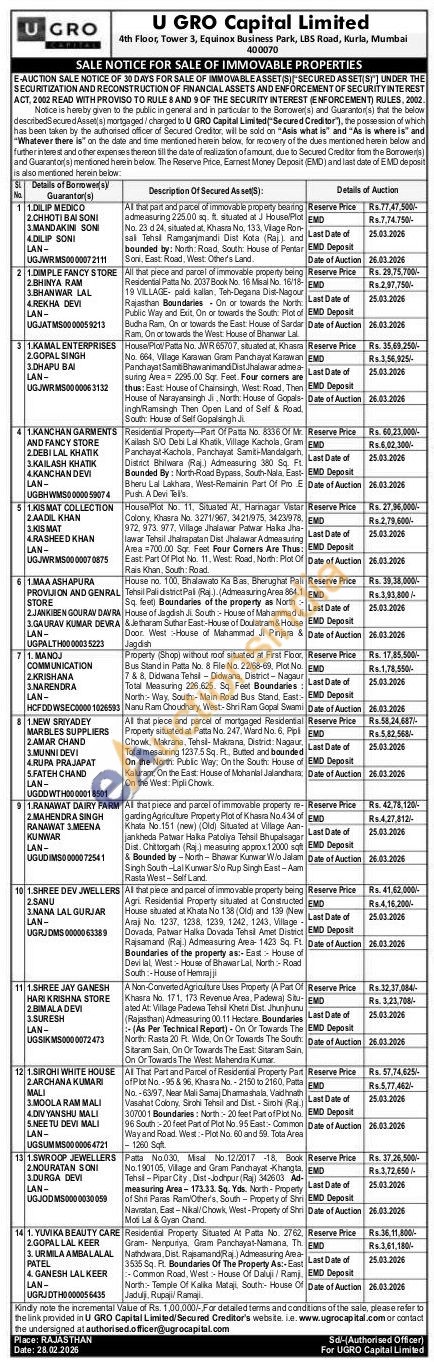email : www.ugrocapital.com or authorised.officer@ugrocapital.com