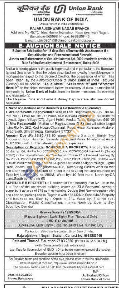 Description of Property: SCHEDULE A PROPERTY: Property Site No 63 & 64, Katha No 6375/660/63 and 6376/660/64 formed in (Sy no 285/2) in the layout known as "Madhumitr Phase 2" in the land bearing Sy No 285/1, 285/2,286,288/1,288/2,288/3,297,298/1,298/2,299,306/3A and 306/38 in all measuring 7 acres 34 guntas situated at Jigani Village, Jigani Hobli, Anekal Taluk, Bangalore-560105, Measuring East to West 80 feet and North 50 feet and South 54.6 feet in all 4172 sq feet and bounded on East by: Land in Sy no 285/3, West by: 40 feet road, North by:CA Land, South by: Site no 65 SCHEDULE B PROPERTY: Residential Flat, bearing, Flat No 101 in the 1 st floor of the apartment building known as "SLV Sarovara" having a super built up area of 675 sq It containing Double Bed Room together with one open car parking space. Together with 175 UDS in Schedule A Property and bounded on. East by Open to Sky. West by: Flat No 105. Classification: Public, Classification: Internal, North by: Open to Sky. South by: Corridor