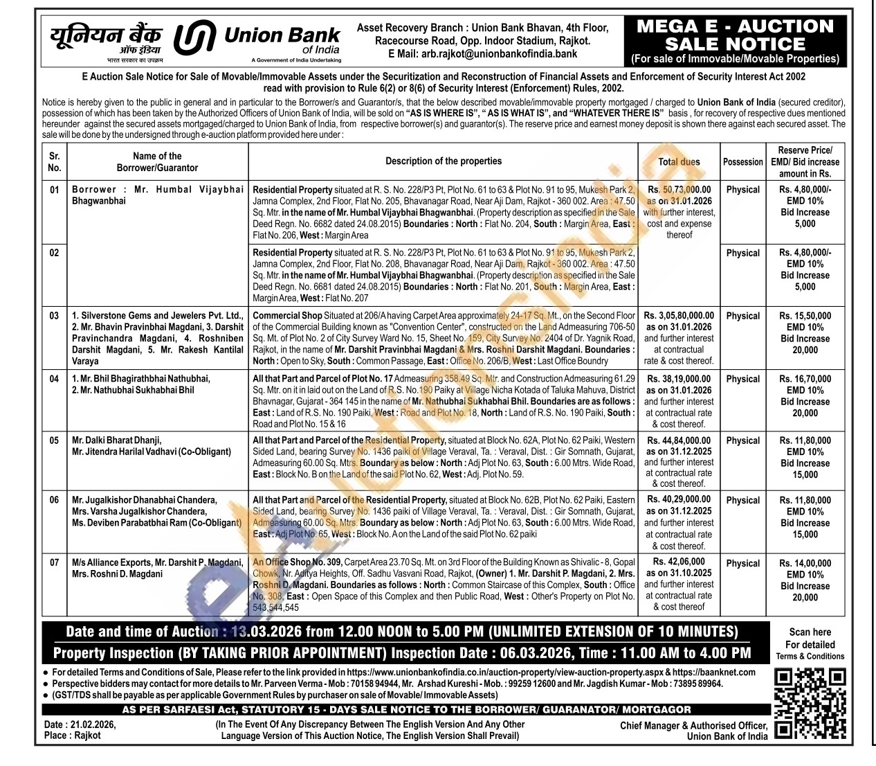 Mr. Parveen Verma-Mob: 70158 94944, Mr. Arshad Kureshi-Mob.: 99259 12600 and Mr. Jagdish Kumar-Mob: 7389589964